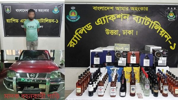 বিশেষ অভিযানে ৫৩৮ বোতল বিদেশী মদসহ গ্রেফতার ১