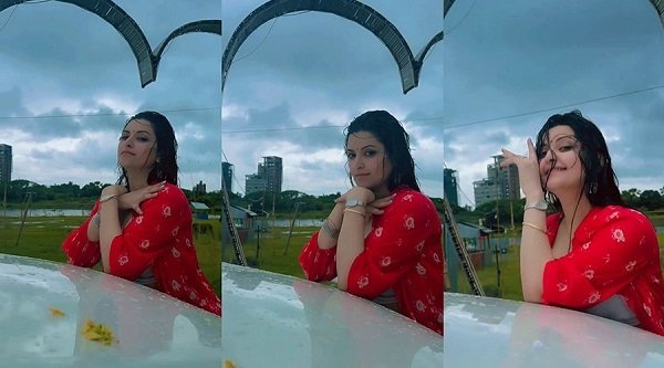 বৃষ্টির উচ্ছ্বাসে নিজেকে মুক্ত করে দিলেন পরীমণি